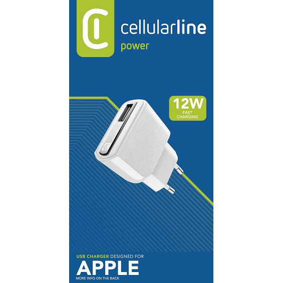 Kućni Punjač CELLULARLINE, Za Apple, 12W, 1xUSB-A, MFI, QC, Bijeli